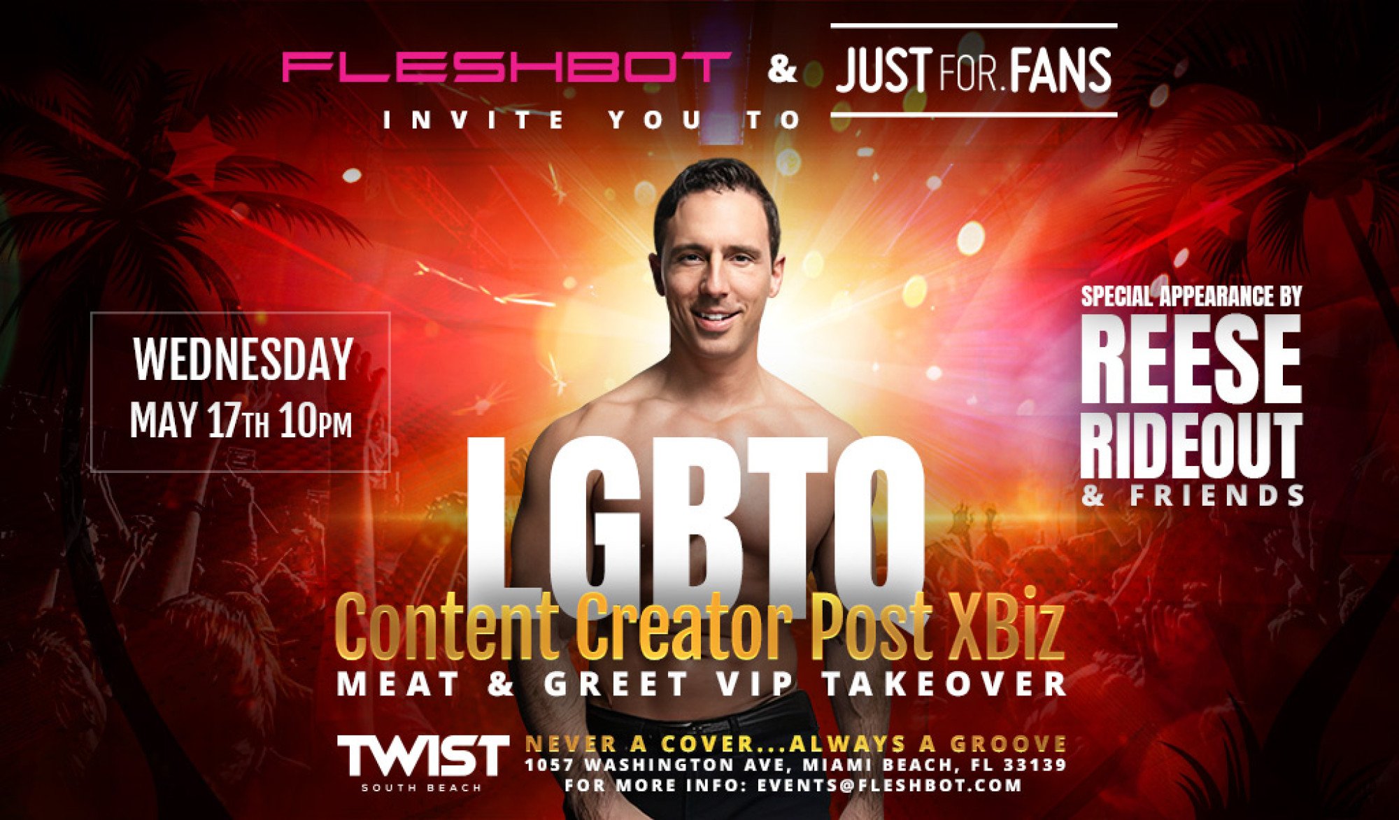 Come mix, mingle, and network with the leading LGBTQ content creators post XBIZ! Fleshbot and JustFor.Fans invite everyone to join us in the VIP area at Twist Nightclub, Miami, directly after the XBIZ Creator Awards as we celebrate our community.