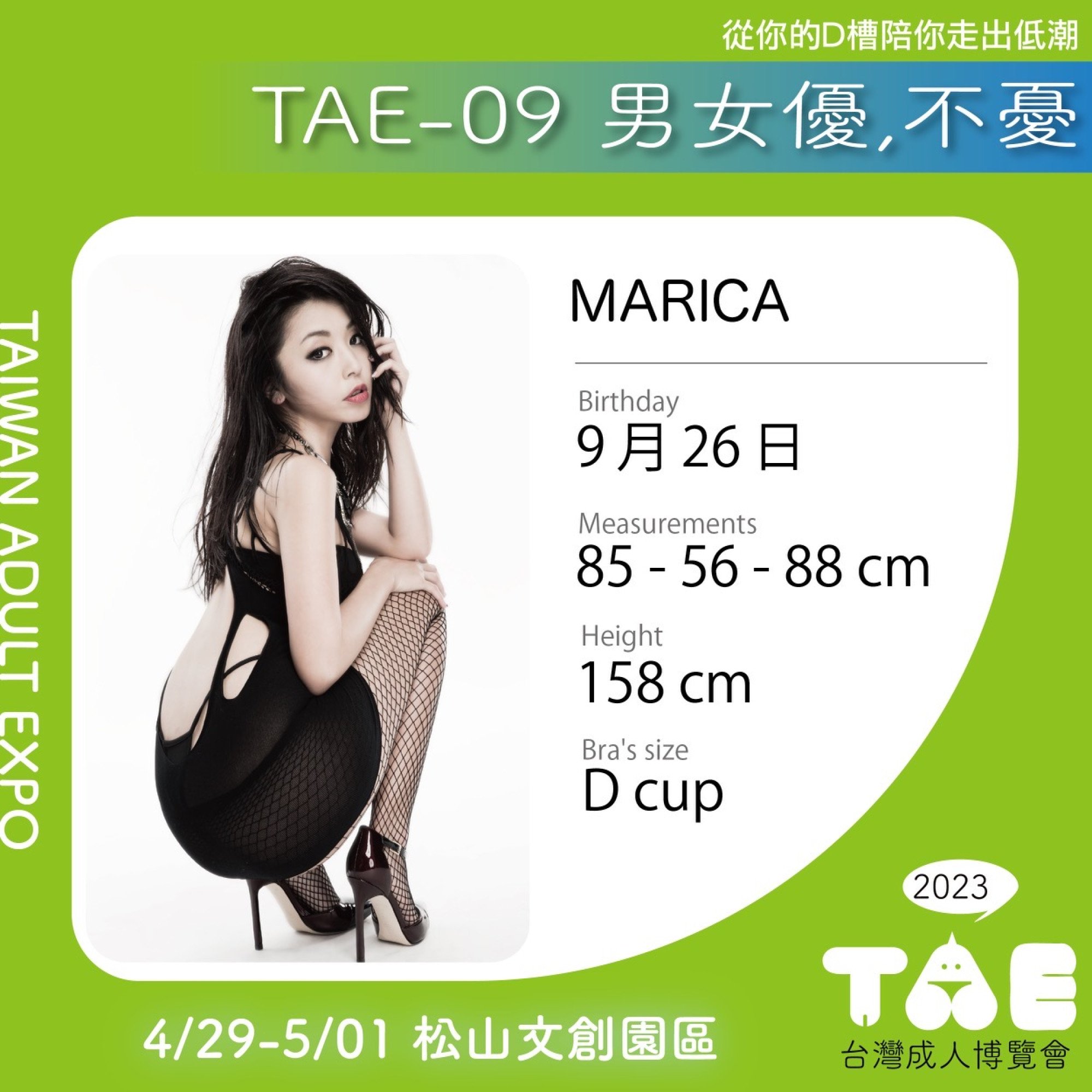 Marica Hase has arrived in Taiwan and will appear at the Taiwan Adult Expo (TAE) from April 29th through May 1st.