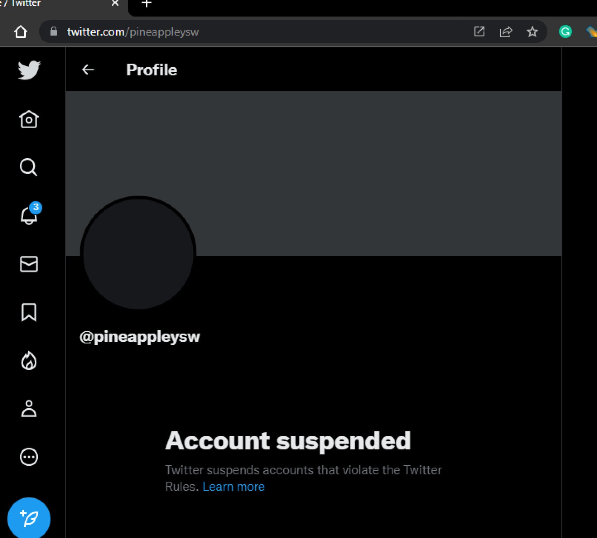 Pineapple Support isn't having a good start to the year. It appears that the Twitter account has been suspended for undisclosed violations.