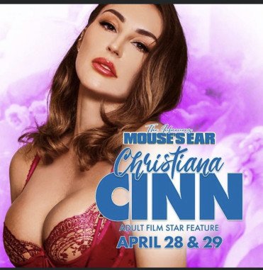 Adult film star Christiana Cinn will be performing 2 shows nightly at the Mouse Ear in Johnson City,...